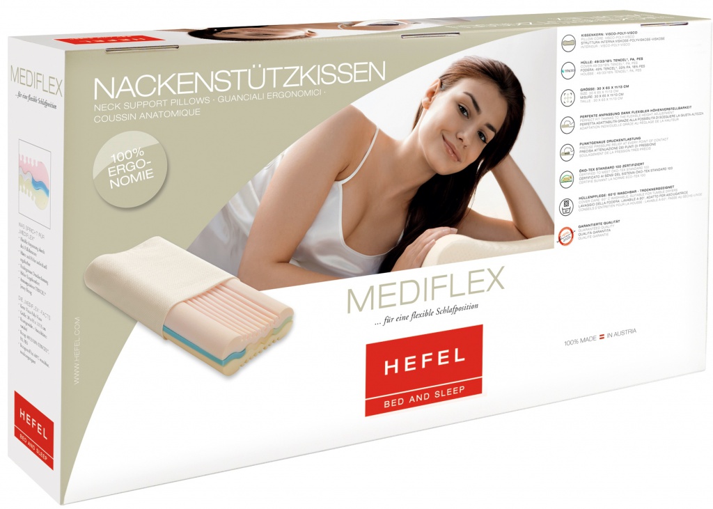 Tudi vratna blazina MediFlex je odeta v krasno prevleko, ki je 50 % iz materiala tencel, 32 % iz poliamida in preostalih 18 % iz poliestra.